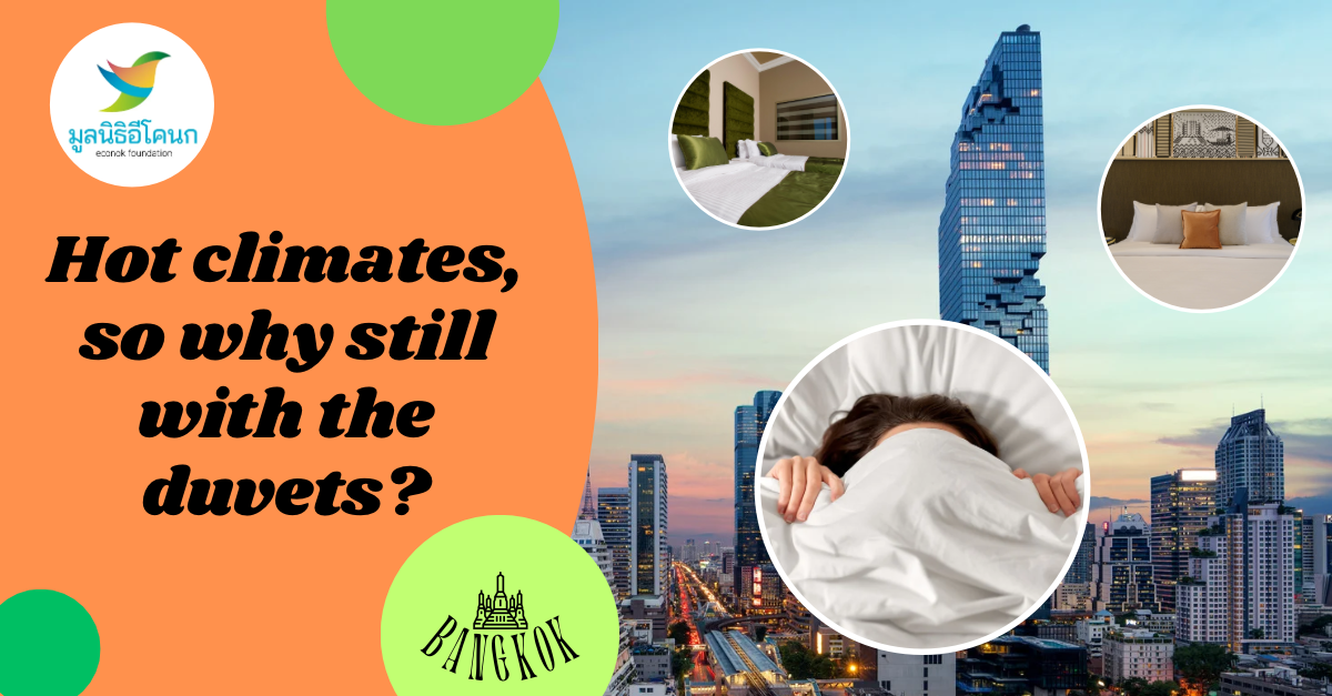 According to a Thai research company, there were approximately 79,000 hotel rooms in Bangkok in 2022. When accounting for the number of hostel rooms and guesthouses, the total number is likely much larger. We must persevere in our grassroots campaign and scale it up significantly to be able to promote our initiative to prominent and globally recognized hotels. The white, thick duvet has long been a symbol ingrained in guests' minds at hotels, making it a challenging task to change such perspectives.