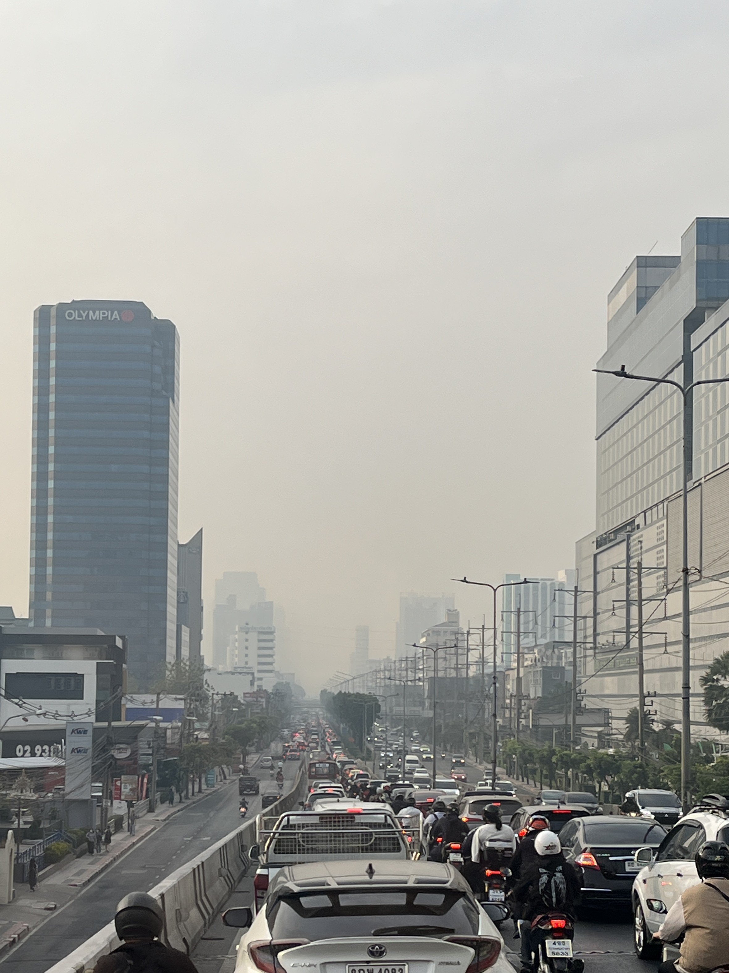 The air quality in Bangkok is dreadful this time of year, with PM2.5 levels soaring to hazardous heights. According to IQAir, the average PM2.5 concentration in Thailand in 2023 was 74, which is 4.7 times higher than the WHO’s annual air quality guideline. Last week, some areas of Bangkok recorded air quality indices exceeding 200, which explains the countless photos and videos of hazy cityscapes circulating on social media and TV. I usually try not to overreact, but I couldn’t help wearing a mask as the air was visibly murky.
